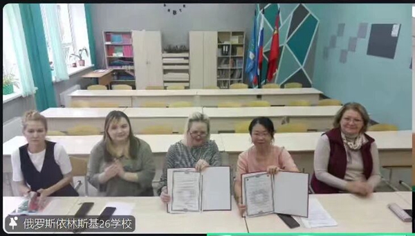 俄罗斯伊林斯基第26学校萨特科娃校长也在致辞中表示两校在诸多方面都有相似之处。希望今天迈出的重要一步能为今后的人文交流工作奠定坚实的基础,期盼双方交流实现新突破。
