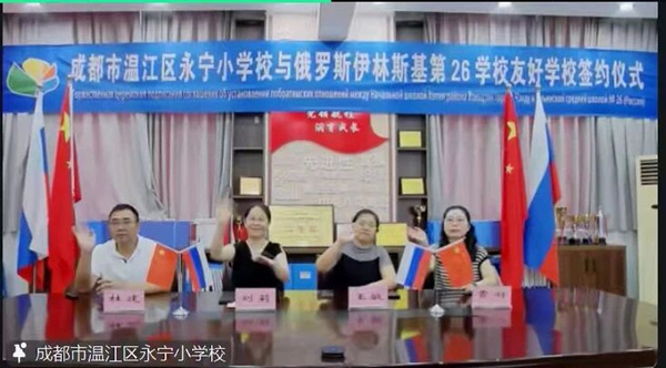 四川教育新闻成都10月11日讯(张红 通讯员 曹羽 邹鲜鲜)在深化中俄新时代全面战略协作伙伴关系的背景下,学校国际化工作迈出重要一步。10月10日,温江区永宁小学校与俄罗斯伊林斯基第26学校隆重举行中外人文交流共建项目友好学校线上签约仪式,共同开启两校教育合作与人文交流的新篇章。