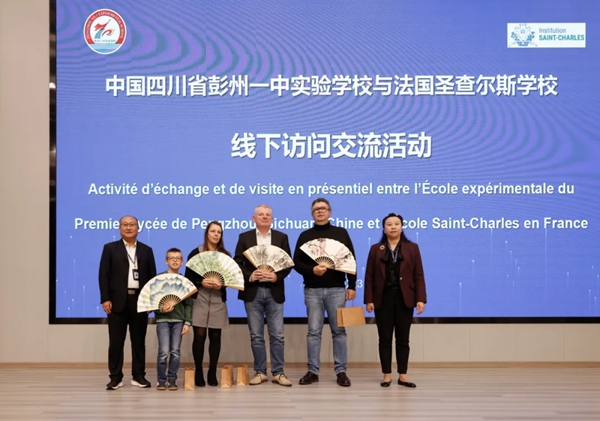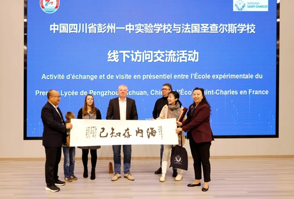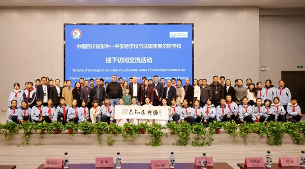 四川教育新闻成都10月28讯(徐瑞莹 通讯员 陈雪梅)为深化国际教育合作,促进中法文化交流,彭州一中实验学校于近日迎来法国圣查尔斯学校代表团一行,双方以“文化共融·教育同行”为主题开展线下交流活动。法国圣查尔斯学校校长布里奥·亚历克西·让·纳西斯、芙拉斯堡市教育局督导主任萨拉伯利·帕特里克·罗杰、教师代表贝瑞缇·萨拉,彭州市教育局教育科吴思忠、彭州一中实验学校党总支书记夏禹、校长何帆等领导及师生代表共同参与活动。此次交流不仅为两校师生搭建了面对面沟通的桥梁,更以多元形式推动文化互鉴,为中外教育合作注入新活力。