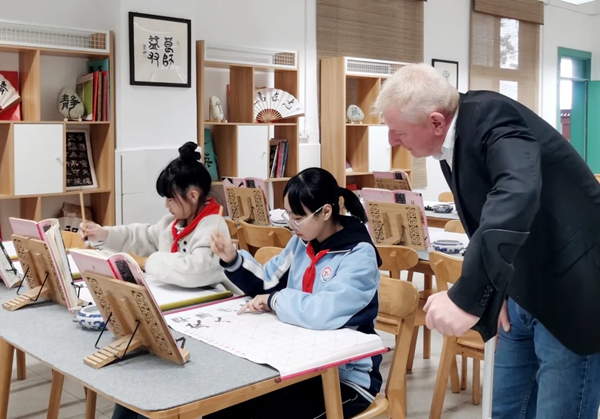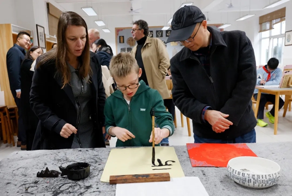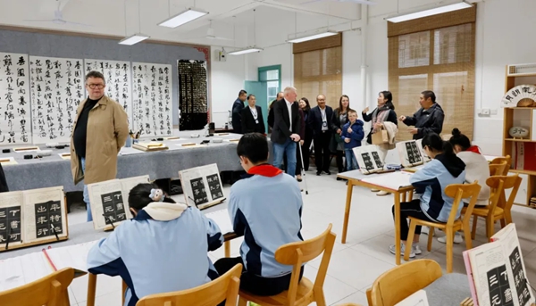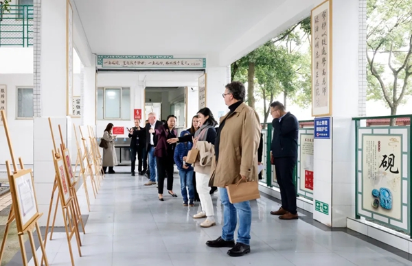 活动伊始,彭州一中实验学校以热情的欢迎仪式开启交流序幕。何帆校长在致辞中表示:“教育是跨越国界的桥梁,希望通过今天的活动,让法国友人感受中国校园的活力与文化底蕴。”随后,法方代表团参观了校园,从师生书法作品展览长廊到充满想象力的手工作品展示,从绿意盎然的半亩园劳动实践基地到墨香氤氲的书法室,中方师生详细介绍了学校“欣赏躬行”的核心理念,法国代表团频频驻足,对校园中融合传统与现代的设计理念赞不绝口。