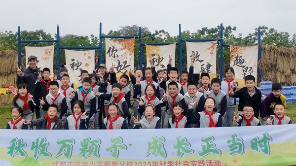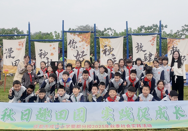 夕阳西下,余晖为田野镀上一层金色,成华小学蜀都分校的学子们满载着泥土的芬芳、美食的余韵与运动的酣畅踏上归途。在这场研学活动中,孩子们触摸了知识的温度,锤炼了能力的锋芒,传承了文明的薪火。从课堂到田野,从书本到实践,这次研学活动在孩子们心中播下了热爱劳动、尊重自然、珍惜粮食的种子。春华秋实,岁月成金,这些种子终将发芽生长,结出累累硕果。