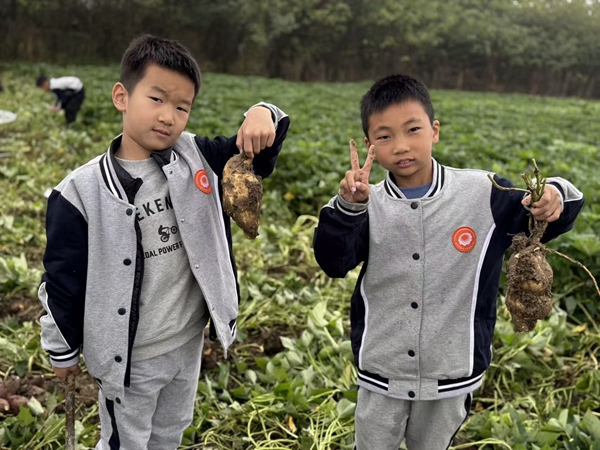 金秋十月,正是收获的季节,研学活动中,1-3年级的小同学们化身“小农夫”,在红薯地里忙碌起来。他们小心翼翼地挥动小锄头,轻轻刨开泥土,每当发现红薯露出身影,便发出阵阵惊喜的欢呼;接着,同学们来到美食制作区,在老师的指导下,将红薯变成香甜可口的红薯糕。劳动间隙,孩子们还发挥想象力,用画笔在草帽上绘制出各具特色的图案,创作出属于自己的独特草帽。活动最后,1-3年级的同学们开展了趣味十足的“毛毛虫”和“城堡翻翻乐”比赛。孩子们分组骑在充气毛毛虫上,步伐一致地向前冲刺,有的队伍配合默契,迅速前进。