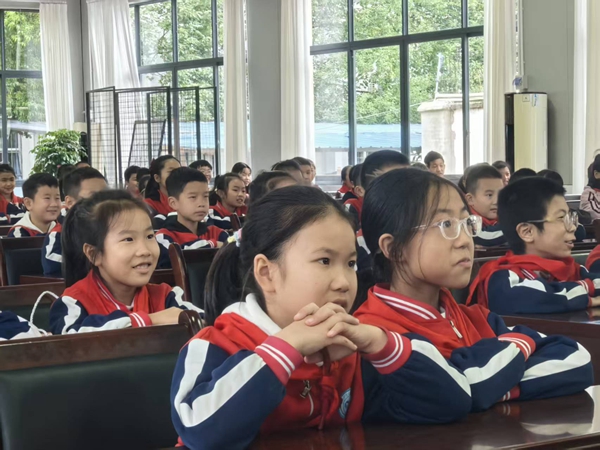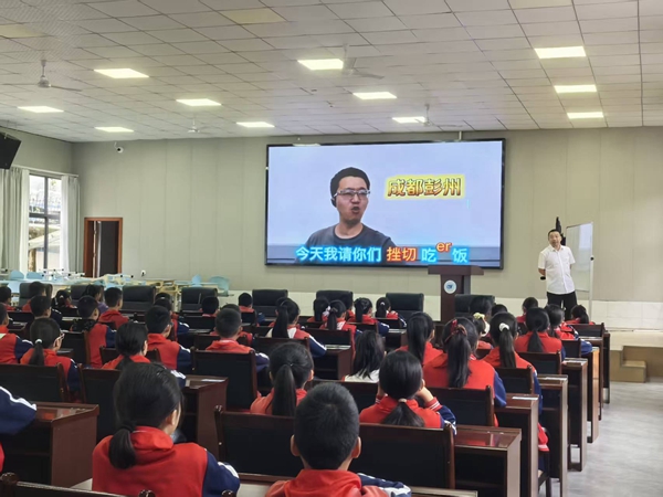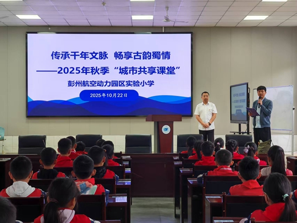 四川教育新闻成都10月30讯(徐瑞莹 通讯员 彭州航动实小)10月22日,2025年秋季“美育天府·城市共享课堂”走进彭州航空动力园区实验小学。四川竹琴、金钱板传人谢赤非老师以“传承千年文脉,畅享古韵蜀情”为主题,为五年级三个班的学生带来了一场浸润非遗魅力的文化讲座。