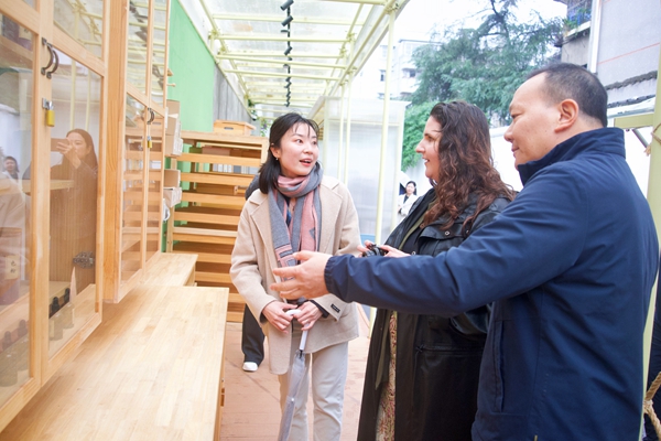 座谈环节,胥校长回顾学校在中法文化交流方面的实践,强调“以文化为桥,拓宽学生国际视野”。法国圣玛丽小学副校长达科斯达女士表示,校园中的热情氛围、学生的语言能力及传统工艺课程令人印象深刻,并期待未来推动更多师生互访。