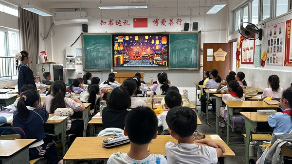第一节课从钱老师的提问:“Do you like festivals?”拉开序幕。钱老师首先给同学们简单讲解了中国传统节日的渊源,并给同学们诠释了国际理解教育的意义。接着,钱老师通过视频播放与ppt讲解的方式,让同学们初步了解到中国的春节、清明节、端午节、中秋节、重阳节等传统节日的起源和每个节日的代表美食,课程中同学们通过中、英文单词的结合学习,更直观的了解了中国节日和国外节日的不同,同学们听得十分认真并踊跃参与互动。