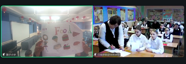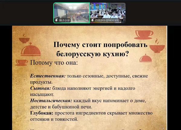 活动伊始,镇子小学的师生们通过精心制作的视频,向远方的朋友展示了学校特色劳动教育课程。从田间劳作的实践体验到手工制作的创意展现,孩子们用生动的画面传递着“在劳动中成长”的校园文化,让白俄罗斯的师生们直观感受到中国基础教育中“知行合一”的独特魅力。
