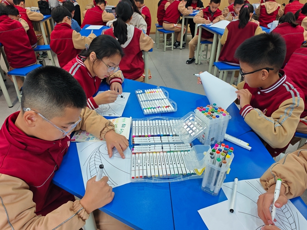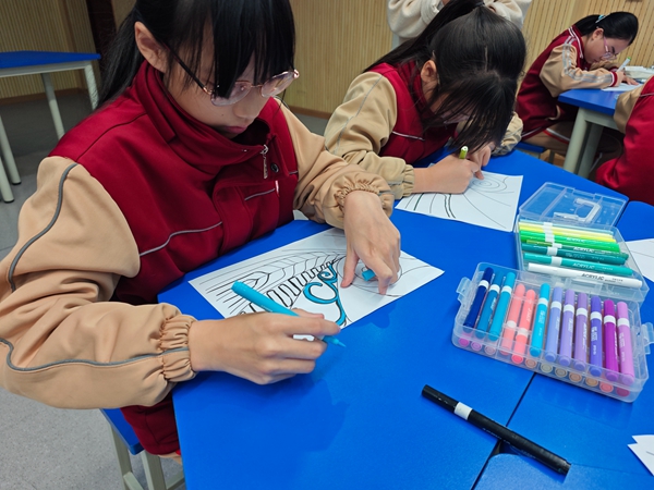 中外孩子们在轻松的互动提问中主动探寻彼此的文化视角:从“你心中的Koru象征着什么”到“你们国家有类似的生命图腾吗”,从创作灵感的分享到审美差异的探讨,每一个问题都成为跨越国界的沟通纽带。他们在相互解答中读懂不同文化的独特表达,在思维碰撞中打破认知壁垒,不仅拉近了彼此的距离,更让跨文化交流从抽象概念变得具体可感,真正实现了以提问为媒、以艺术为桥的深度人文联结。