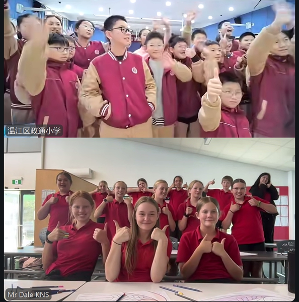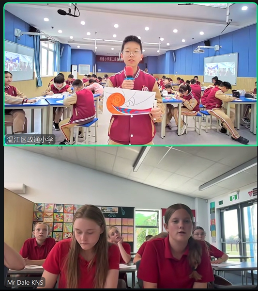 四川教育新闻成都11月12日讯(徐瑞莹)为拓宽政通娃的国际视野和跨文化意识,11月11日温江区政通小学与新西兰友校开展了中外人文交流课。本次课程借助跨文化艺术实践,以搭建中外学生理解新西兰文化的桥梁,培养学生的跨文化审美能力与创意表达能力,推动中外人文精神的碰撞与交融。