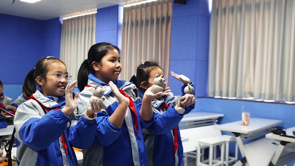 文化分享意犹未尽,趣味陶泥创作接力登场。在我校美术老师郭青霞的带领下,中法同学同步解锁“熊猫DIY”技能。镜头前,大家揉、捏、搓、压,指尖翻飞间,陶泥逐渐变身成一个个萌态十足的熊猫作品。郭青霞老师通过镜头细致演示手法,耐心解答法国同学的疑问,屏幕两端的创作热情相互感染,一张张笑脸与憨态可掬的作品相映成趣。