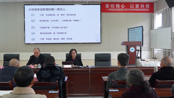 德育副主任利加琴提出“理解支持老师、培养良好习惯、关注身心健康”的育人建议。副校长何睿围绕学习态度、习惯养成与在校表现,重申家校合作的重要性。校长林海强调家长们要和学校步调一致,实事求是地规划孩子最适合的成长路径,为孩子的小学时光画上圆满句号。