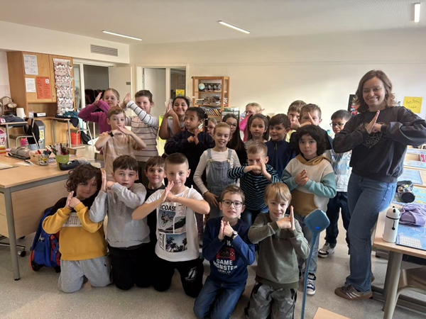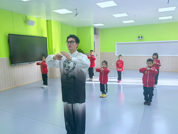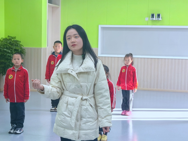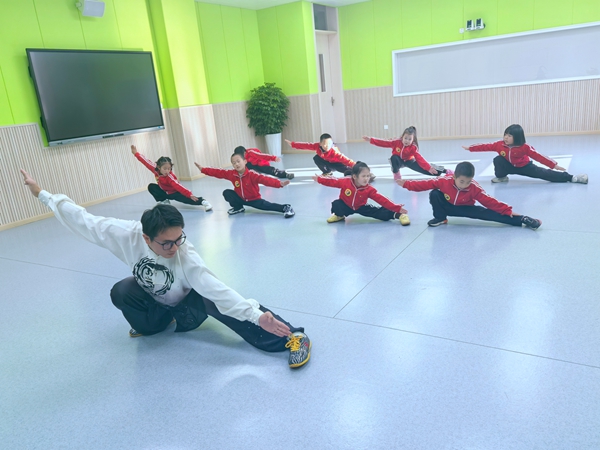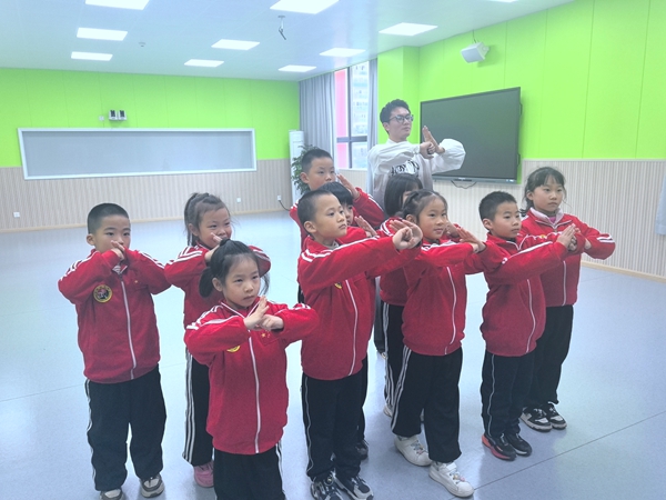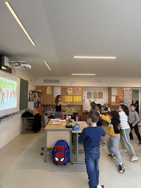 在简短领略长拳与南拳的不同风采后,动感的热身环节瞬间拉近了距离。法国孩子们随着音乐努力跟上节奏,开合跳、高抬腿……虽然偶尔会手忙脚乱,但脸上都洋溢着开心的笑容,课堂气氛在跨越时空的同步运动中迅速升温。