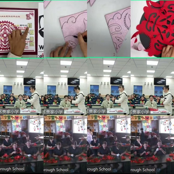 “这是我们准备的见面礼——”屏幕一端,贾家小学校六年级五班的学生们手持红纸,随着剪刀轻盈舞动,一幅幅兼具中国非遗韵味与新西兰风情的创意团花渐次绽放。这场以“剪刀为笔、红纸为媒”的文化互动,让远隔重洋的两国学子在屏幕前相遇,看见彼此文化中闪烁的光彩。