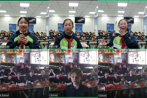 在随后的互动环节,围绕春节窗花与圣诞庆典的对话,以及校园生活与周末趣事的分享,将交流从艺术延伸至生活。贾家小学的学生用英语积极回应新西兰同学的提问,而谢老师也在对方回答后不吝赞美与鼓励,于细节中展现礼仪之邦的真诚与友善。