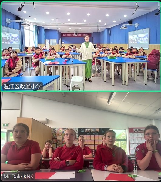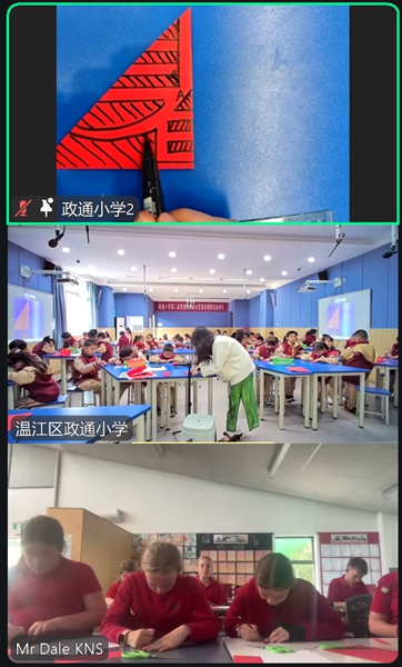 在作品分享环节,孩子们兴奋地举起自己的剪纸,并将作品与各自家乡的美景合影。一方小小的窗花,不仅留下了快乐,更承载了政通小学学子对新西兰伙伴最真挚的友谊与祝福。