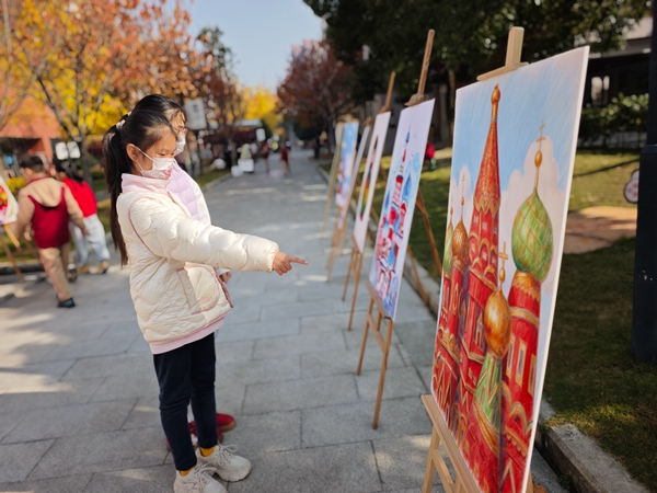 为了将文化交流的种子播撒到更广泛的校园,政通小学校随后举办了精彩纷呈的“俄罗斯文化线下体验日”活动。活动的一大亮点是“友谊的色彩”中俄学生画作展。学校前期收集了两国学生的绘画作品,这些画作主题鲜明、色彩绚丽,有的描绘了两国的特色建筑,有的展现了天马行空的想象。画展吸引了全校师生驻足观赏,大家透过画作,感受到了中俄两国少年眼中不同的世界与同样纯真的心灵。