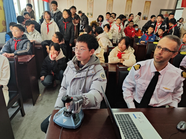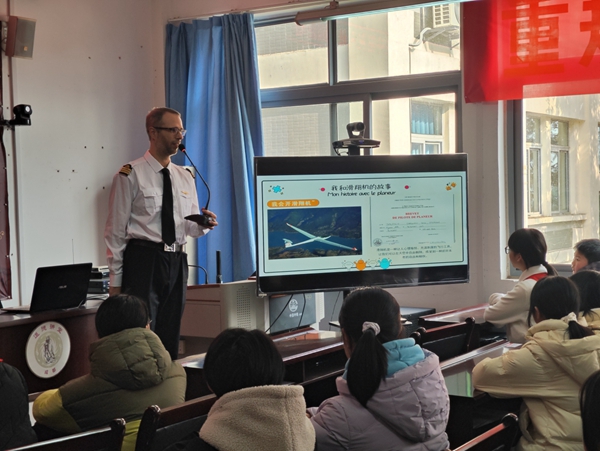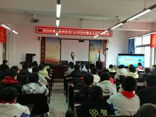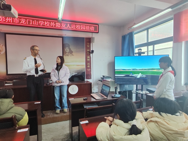 四川教育新闻成都11月28日讯(徐瑞莹)2025年11月26日下午,彭州市龙门山学校大会议室内座无虚席,七年级全体学生迎来了一场别开生面的“外籍友人进校园之航空知识交流活动”。法国籍友人Chris携手翻译王文睿老师,以“航空探索”与“文化交融”为主题,通过知识讲座、模拟体验、法语互动等环节,为同学们开启了一场跨越国界的科技与文化之旅。