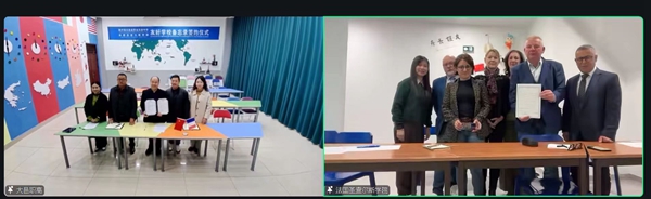 在双方参会人员的在线见证下,余治平书记与布里奥·亚历克西斯校长分别在友好学校合作备忘录上签字,并通过镜头展示签约文本,共同定格这一意义深远的时刻。