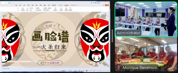 四川教育新闻成都12月3日讯(张红)“脸谱”作为中国戏曲的文化符号,是国际理解教育中传递中华美学的生动载体。为了让孩子们在跨文化语境中读懂中国文化传统,12月3日上午,温江区东二长安路分校与新西兰雷德克里夫学校(Redcliffe School)再次云端牵手,开展了一场别开生面的“画脸谱 大圣归来”国际理解主题课程。本次活动以中国传统艺术为纽带,旨在深化两校学生的文化交流与相互理解,搭建中西文化沟通桥梁。