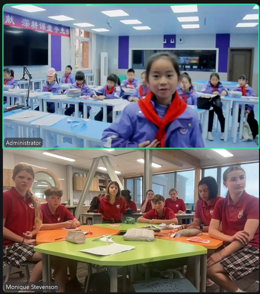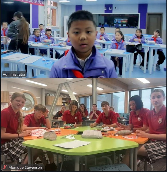 东二长安路分校国际理解张佳老师则是全程提供精准流畅的翻译与协助,确保了交流的零障碍与课堂互动的高效进行。线上课堂气氛热烈,两国学生虽相隔万里,却通过艺术创作实现了心灵的共鸣与思维的碰撞。