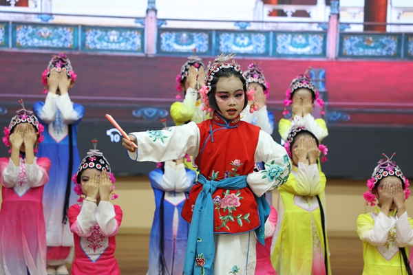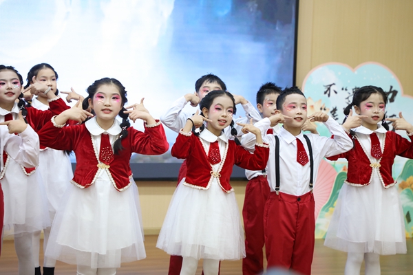 穿上京剧戏服,唱起了《卖水》,袖子一甩、眼神一亮,可真像个小角儿!还有同学演起了舞台剧《不遗余地,向美而行》,告诉大家:成长路上,要一直向前、向美出发。当大合唱登场啦!《歌声与微笑》和《国家》的歌声响起时,好多小朋友挺起小胸膛,声音又亮又齐,赢得阵阵掌声!