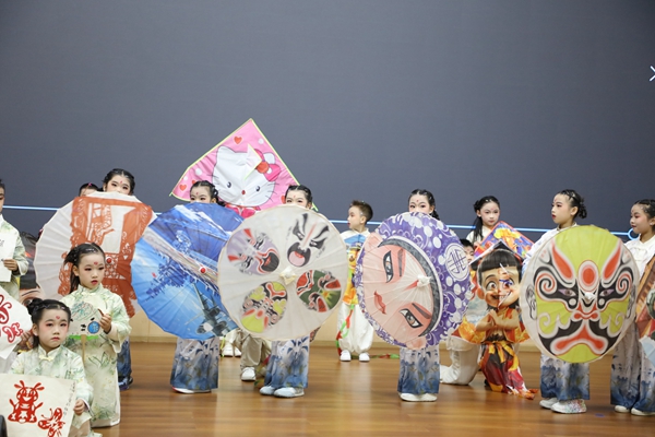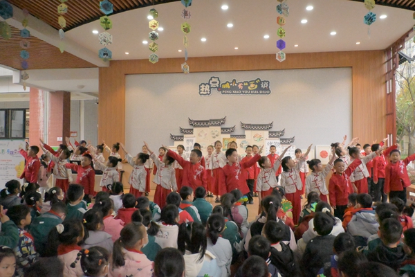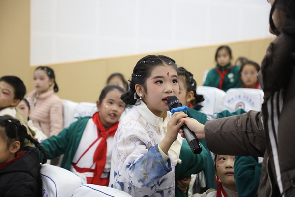 四年级A组桃李园展区变身“迎新艺术角”,展出的学生作品充满巧思:有传递温暖的红十字画作、许下成长心愿的家务手抄报,以及融合了灯笼、雪花等元素的油画,童趣盎然。舞台上节日气氛浓厚。学生们身着盛装,用清澈的合唱、灵动的新年舞蹈,及韵味十足的戏曲表演迎接新年,赢得阵阵掌声与欢笑。歌会以歌传情、以艺迎新,在为孩子提供展示舞台的同时,也让大家在欢声笑语中感受到浓厚的新年气息,珍藏下美好的校园记忆。