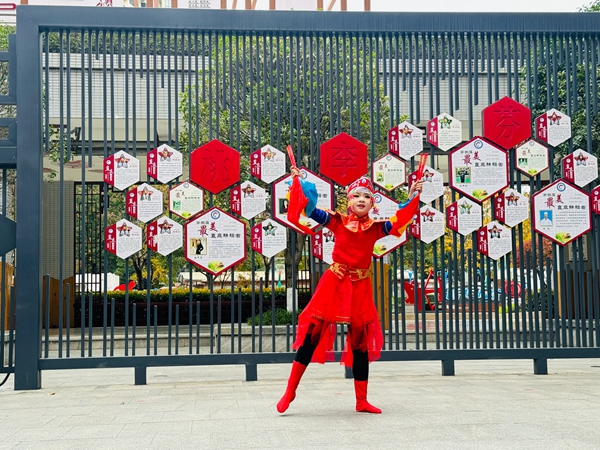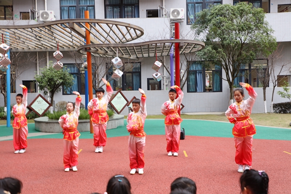 二年级B组活力四射的开场舞《新年快乐》瞬间点燃气氛;阳光啦啦操跳出青春的朝气;刚劲有力的武术表演彰显中华气魄;书法秀中,笔墨流转间尽显汉字韵味;京剧《卖水》一招一式韵味十足;剪窗花环节,巧手剪出新年祝福;最后,全体合唱《福气要来到》,传递最纯粹的喜悦。