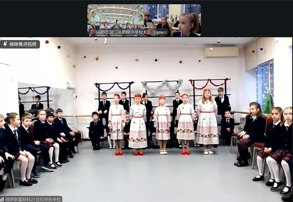 12月3日下午,鹏程小学直立报告厅里飘出一串串清脆的问候声。“你好!”“Здравствуйте!” 声音竟来自遥远的俄罗斯莫斯科!