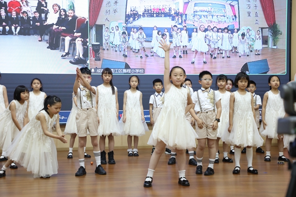 鹏程小学合唱团压轴登场,声音像清泉一样流淌。俄罗斯小朋友在屏幕那头认真听,在热烈地鼓掌呢!活动最后,所有小演员一起跟着《友谊地久天长》的旋律,朝着大屏幕挥手。虽然相隔千里,但音乐让我们站在一起!