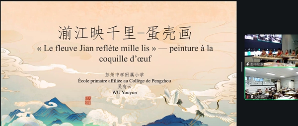 四川教育新闻成都12月6日讯(徐瑞莹)2025年12月4日,“湔江映千里”中外人文交流线上活动在学校学术报告厅正式启动。活动以中国传统民间工艺美术——蛋壳画为桥梁,由彭州中学附属小学美术教师吴有云担任指导。中国学生带着对家乡湔江的深厚情感,比利时学生怀着对东方文化的热切向往,共同步入这场文明互鉴的旅程,让千年湔江与世界深情相拥。