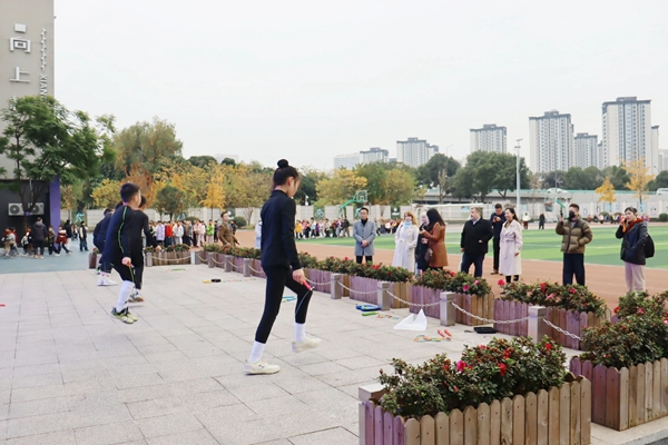 在操场,访问团观摩了学校特色体育锻炼——跳绳队整齐的表演与足球队精彩的射门训练。孩子们昂扬的精神、熟练的技巧,生动诠释了“文明其精神,野蛮其体魄”的教育实践。