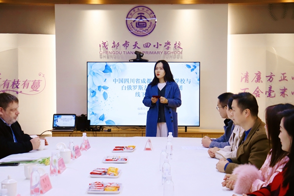 四川教育新闻成都12月6日讯(魏雅莉 通讯员 龚琼芳 许书琳)2025年12月4日上午,白俄罗斯友好学校访问团一行来到天回小学校,展开了一场充满温情的教育文化交流活动。天回小学师生以热情洋溢的欢迎仪式、富有中华文化特色的课程体验和深入坦诚的座谈交流,向远道而来的教育同仁展示了学校的办学理念、课程建设与学生风貌,共同谱写了一曲跨越山海的友谊乐章。