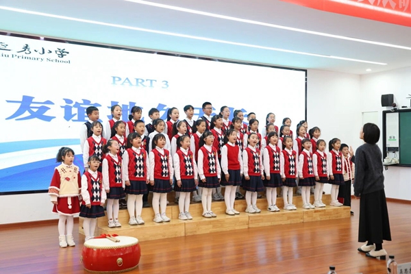 随后,小春笋声乐社团的孩子们以清澈动听的童声演绎了歌曲《友谊地久天长》《我们都是追梦人》,悠扬的旋律传递着跨越国界的温暖友谊。