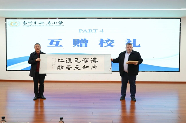 凝聚着延秀小学精神内核的校园文创礼物,以及题写着“海内存知己,天涯若比邻”的书法作品,传递的是延秀师生对远方朋友真挚的情谊,也是对中白教育交流的美好祝愿。