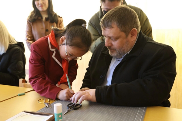 笔墨载心意,千里共比邻。在温馨的氛围中,李先义书记与白俄罗斯明斯克州教育发展研究中心主任达拉本尼亚·佛洛达先生互赠校礼。