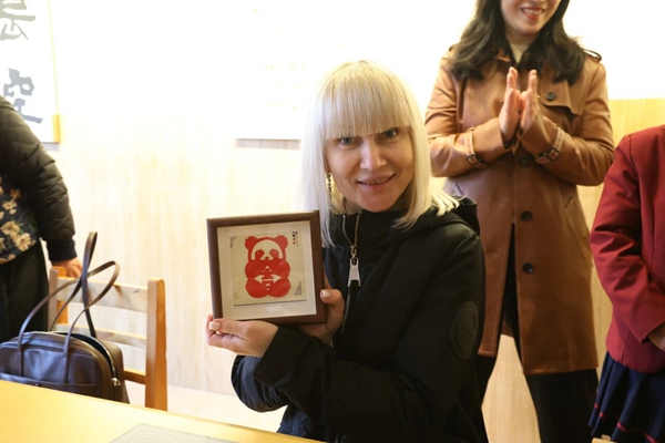 在剪纸课堂,尹华翠老师细心指导,客人们兴致盎然,动手创作,在一折一剪间感受中华民间艺术的精巧与趣味。
