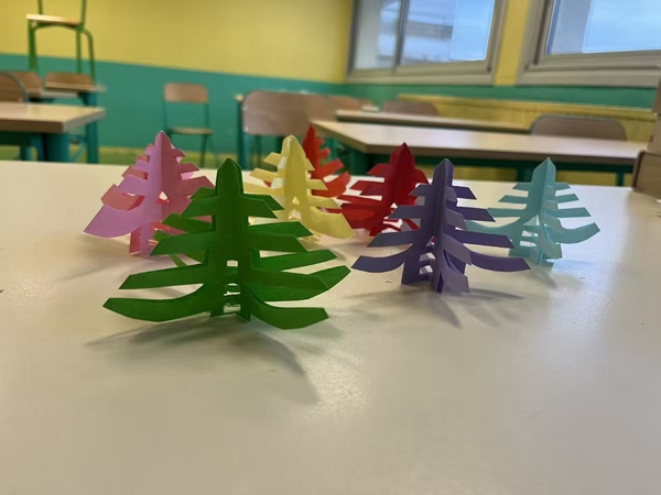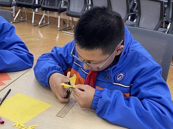 随后的“立体春”剪纸教学环节将活动推向高潮。蜀城中学吴涛老师为两国师生详细讲解了剪纸的历史渊源与文化内涵,系统介绍了剪纸所需材料和剪刀使用安全须知,并通过清晰的步骤演示,指导大家制作“立体春”剪纸作品。在动手实践环节,同学们跟随老师的指导,折、画、剪、刻,亲手创作属于自己的剪纸作品。完成作品后,大家纷纷将成果举到镜头前展示,云端洋溢着欢乐与创意的氛围。