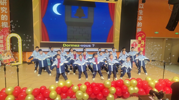 四川教育新闻成都12月31日讯(张红)2025年12月31日,成都市温江区科创中学校(涌泉校区)小学部迎来了一场别开生面的迎新歌会。学校法语班的同学们在歌会上精彩演绎了经典法语儿歌《雅克兄弟》,为全校师生带来了一场跨越文化的美妙音符。