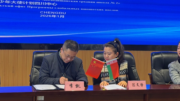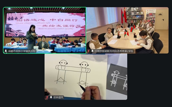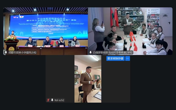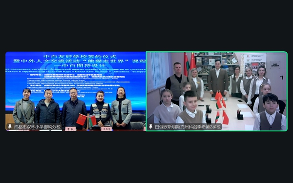 四川教育新闻成都1月12日讯(魏雅莉)2026年1月9日,成都市双林小学御风分校三楼阶梯教室暖意融融。跨越亚欧大陆 6000 余公里的距离,学校与白俄罗斯明斯克州科洛季希第2学校通过云端携手,隆重举行友好学校签约仪式暨 “图语连心・中白同行” 线上人文交流活动。在成都市教育对外交流中心、白俄罗斯明斯克州教育发展研究中心的指导下,在环球青少年大使计划四川中心的协助下,两校以教育为桥、以文化为媒,正式缔结友好伙伴关系,书写中外人文交流的美好答卷。