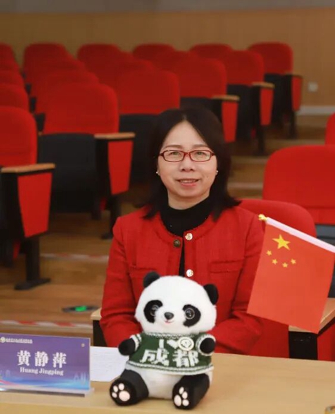 紧接着,成都市玉林小学果堰分校校长黄静萍致辞。她介绍了学校2023年建校以来的发展成果,作为教育部中外人文交流特色学校,学校秉持“让校园成为生命成长的乐园”的核心理念,构建了多元融合的“果宝课程”体系,并在课程改革、校家社协同育人等方面成效显著。黄校长引用“相知无远近,万里尚为邻”的中国古语,表达了对两校未来在课程研发、师生互访、文化展示等领域深入合作的热切期盼。