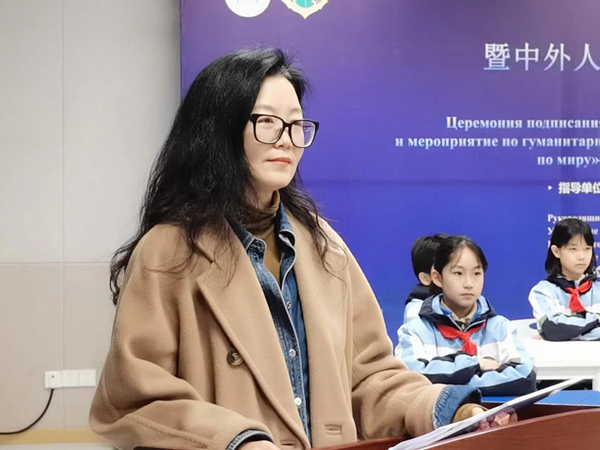 四川大学附属实验小学南区学校书记、校长金艳致辞。金校长从师生数据画像、三层课程体系、特色文化活动等方面介绍了川大附小南区学校,生动体现了南区学校的“国际品质”与“中国气派”。金校长表示,此次结对活动是南区国际化步伐的新起点,期待与对方携手,为孩子们创造更广阔的世界,共创教育新篇章。