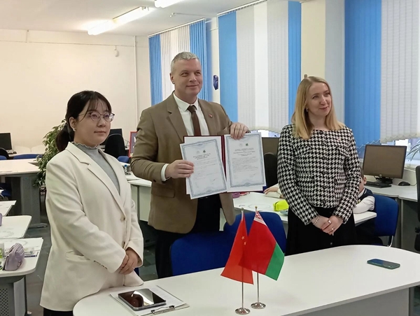 当日下午,签约仪式在庄重而友好的氛围中正式开始。参与此次仪式的中外嘉宾有:白俄罗斯明斯克市第182学校校长弗拉基斯拉夫·弗拉基米罗维奇·克拉伊诺夫、教学副校长叶卡捷琳娜·米哈伊洛夫娜·布洛希娜、中文教师许英兴等白方代表,四川大学附属实验小学南区学校书记、校长金艳等领导班子成员、教师代表以及环球青少年大使计划四川中心主任易彬等中方代表。双方代表相聚云端,互相致以诚挚的问候。