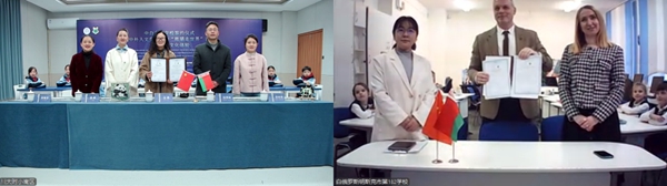 四川教育新闻成都1月19日讯(魏楚寒)1月15日,在成都市教育对外交流中心、武侯区教育局、白俄罗斯明斯克州教育发展研究中心的指导支持以及环球青少年大使计划四川中心的协助下,四川大学附属实验小学南区学校与白俄罗斯明斯克市第182学校成功举行友好学校线上签约仪式,正式缔结为友好合作伙伴关系,共赴一场云端之约,共同开启中白基础教育交流合作的新篇章。