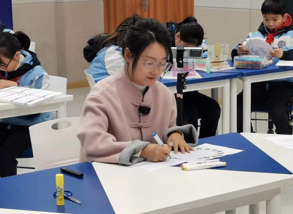 两校的孩子们在完成创作后,来到镜头前相互分享、介绍了自己的作品。