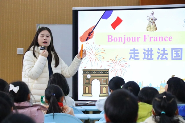 为确保访问活动顺利开展,1月8日,法语教师提前走进九尺小学,为参与交流的学生带来了一场生动的法国文化普及课。课堂上,教师通过图文展示、视频讲解等形式,系统介绍了圣丹尼斯学校的特色,为双方后续的顺畅沟通与友好互动奠定了坚实基础。