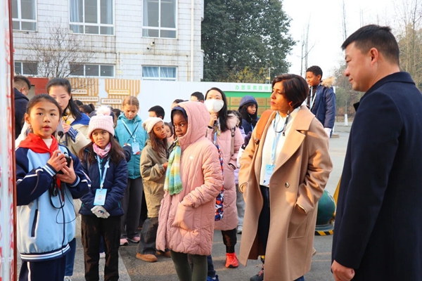 1月16日上午,法国圣丹尼斯学校师生代表团抵达九尺小学,九尺小学校长刘晓希携师生代表热情迎接,并带领大家参观校园环境。杨婕琪、尹可馨、高雨萱三位九尺小学“小小讲解员”对学校的历史、办学理念、特色课程建设及校园文化成果向代表团进行生动讲解。自信的表达赢得了代表团的频频赞许,让远道而来的客人直观感受九尺小学的教育活力与人文底蕴。
