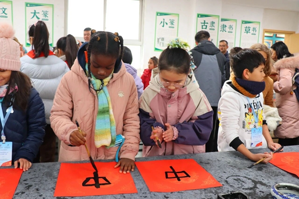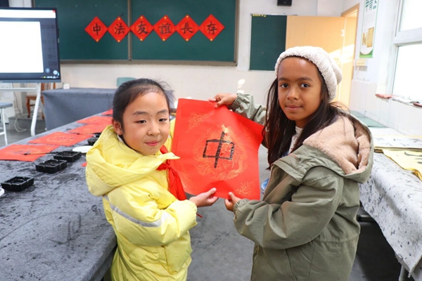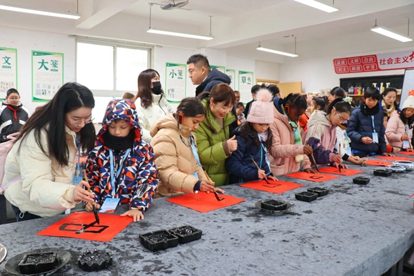 书法教室里,墨香四溢。在书法教师欧文兴的指导下,和书法社团学生的帮助下,代表团成员手握毛笔,从握笔姿势学起,一笔一画书写汉字,感受横平竖直间的东方美学。虽然语言不通,但笔墨成为跨越隔阂的桥梁,法国师生专注的神情与稚嫩却认真的笔触,展现了对中国传统文化的浓厚兴趣与尊重。