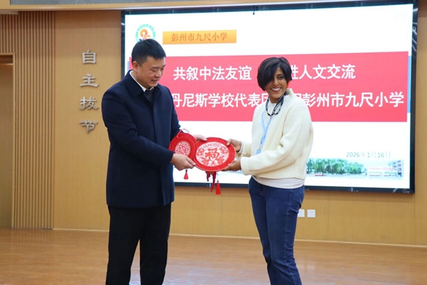 四川教育新闻成都1月19日讯(徐瑞莹 通讯员 王捷)为深化中法两国教育文化交流,增进两校师生友谊,2026年1月16日,法国圣丹尼斯国际学校16名师生代表团跨越重洋对彭州市九尺小学开展友好访问活动。此次访问以文化体验为纽带,搭建起两校互联互通的桥梁,让中法学子在沉浸式互动中感受多元文化魅力。