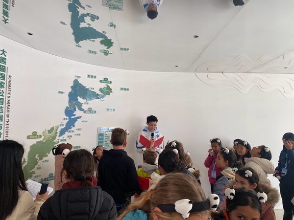 接着法国师生在访客中心内深入探秘。从大熊猫的演化历史到龙门山独特的生态环境,详实的展览内容配以生动的讲解,让他们对“中国国宝”及其栖息地有了科学而系统的认识。