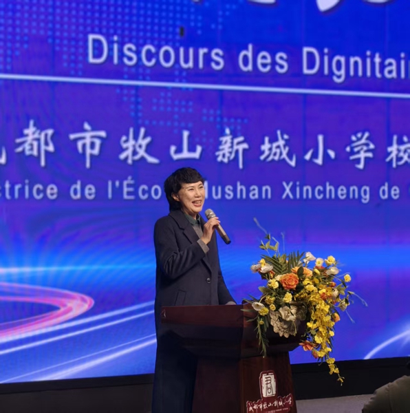 活动在庄重而温馨的氛围中拉开序幕。牧山新城小学校长赖敏首先致辞,对远道而来的法国师生表示热烈欢迎,并分享学校以“新六艺”育人、培养“中华君子”的教育理念。她表示,此次交流是学校“与世界对话”教育理念的生动实践,期待两校携手共创美好未来。