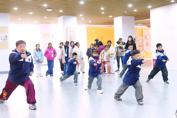 随后,两校学生先后登台,呈现了精彩纷呈的才艺展示。牧山新城小学子牧童声合唱团演唱了《黑猫警长》《兰花草》等歌曲,展现了中华文化的韵味与童真;法国学生则表演了中文春节童谣和合唱《让我们一起说“你好”》,赢得阵阵掌声。此外,中方师生联袂献上的民族舞蹈与武术表演,刚柔并济,彰显了中华传统文化的独特魅力。